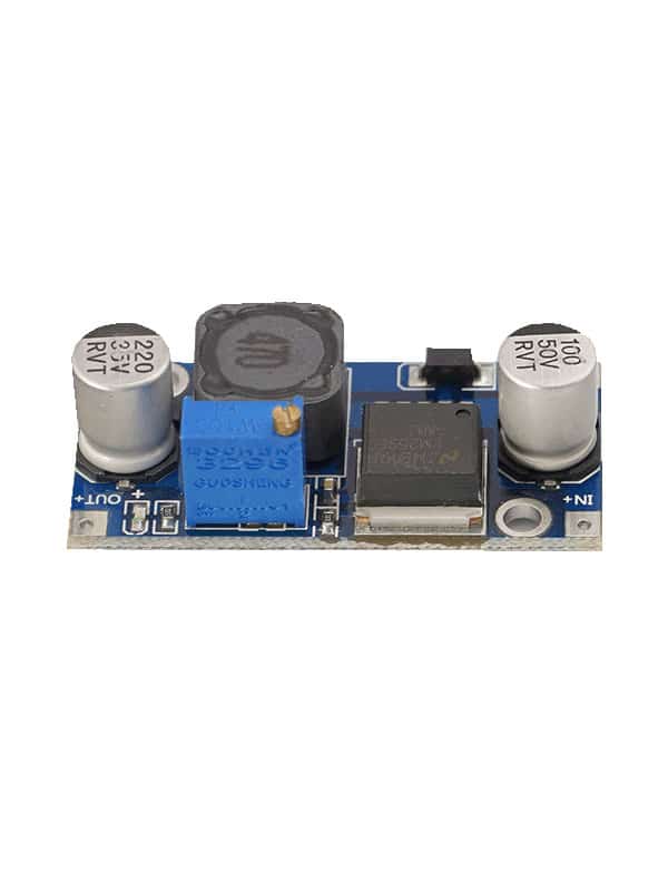 Δέχεται στην είσοδο τάση 7-32V DC και στην έξοδο ρυθμίζουμε με το ποτενσιόμετρο την επιθυμητή τάση, η οποία είναι χαμηλότερη από την τάση εισόδου